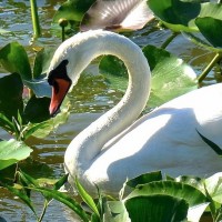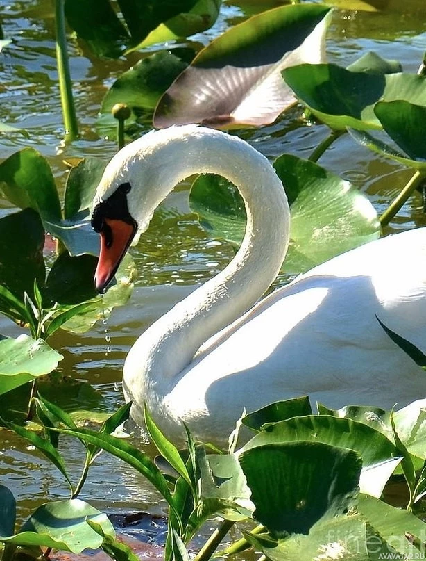 a natural habitat such as a pond or lake, rather than a zoo. Swans are known for their elegant appearance and
