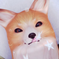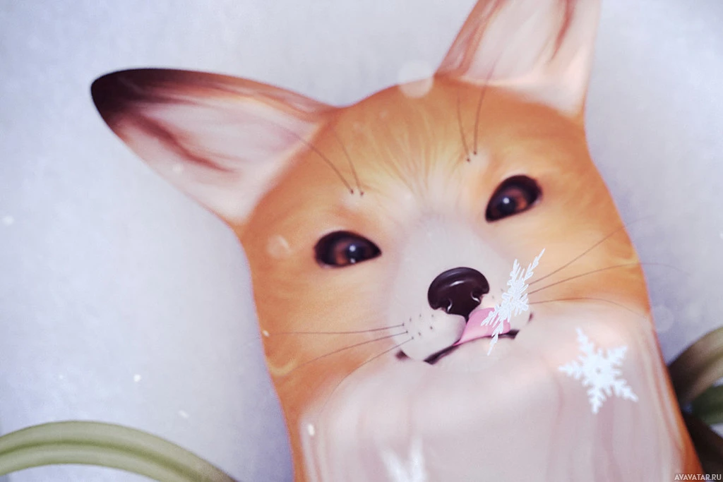 a cold environment where snow is present. The fox appears to be made of soft material, possibly for