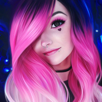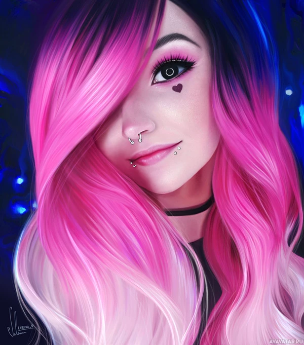 digital art of a person with pink hair and distinctive makeup. It appears to be