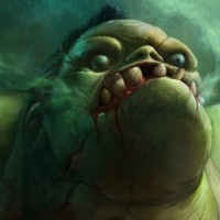 The image shows a fantasy artwork of a character resembling Pudge from the video game Dota 2. This is not a real person but rather an illustrated representation of the character, known for its large body and distinctive appearance within the context of the game's lore.