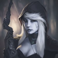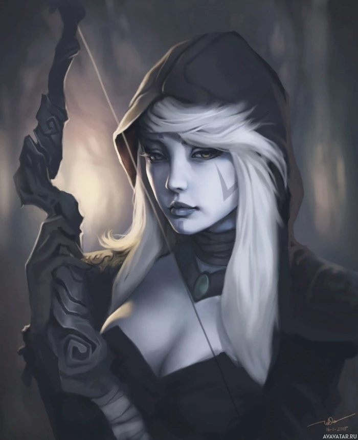 a female character who appears to be from the game Dota 2. She is depicted as a Drow Ranger, which is a hero in the game known for her ranged combat abilities and