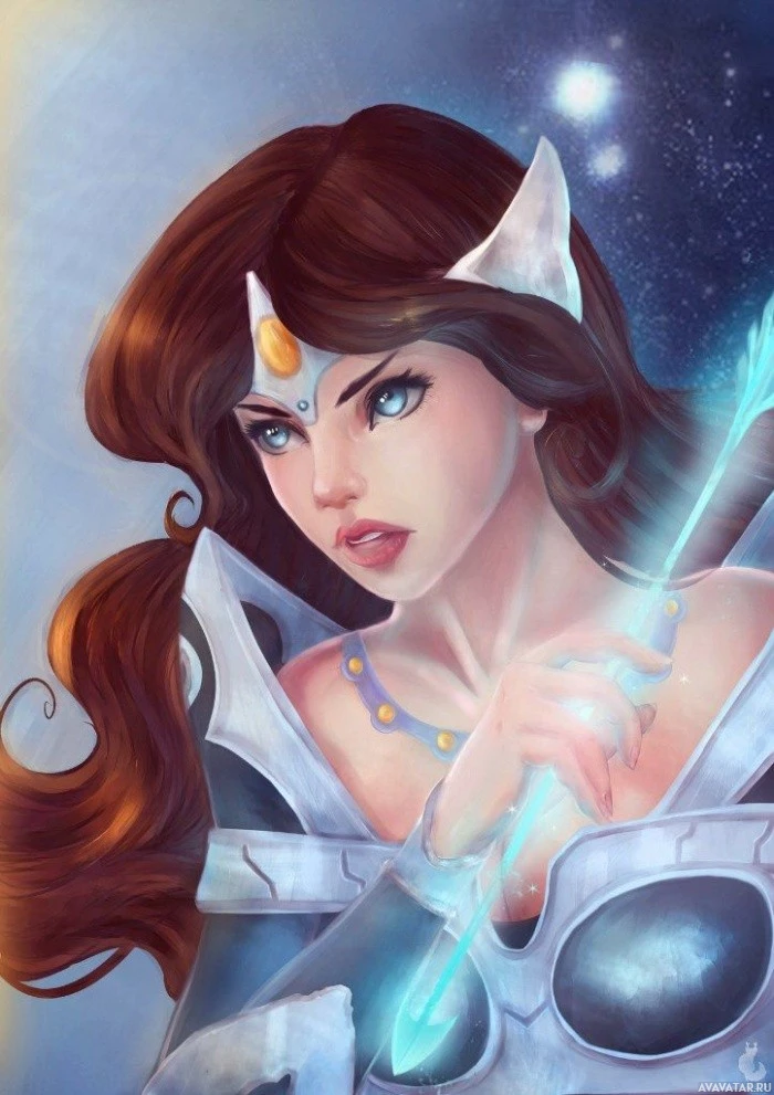 The image features a character that appears to be Mirana, a playable hero in the multiplayer