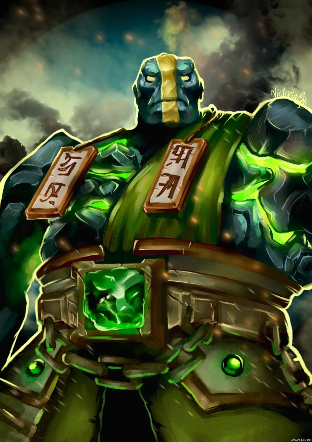 Earth Spirit" and is depicted in a pose that suggests they are ready for battle or action within the game. The artwork captures the fantasy elements common to the Dota series, including the character's armor and