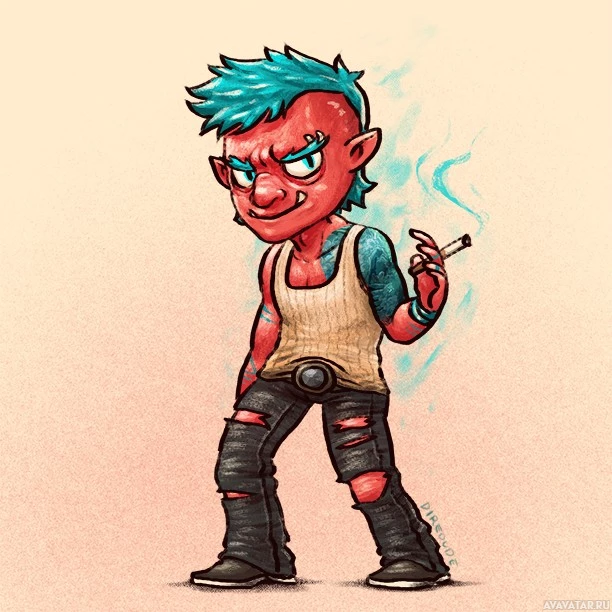 a tank top, which could suggest a casual or rebellious attitude. The background is simple and does not provide any specific context for the character's setting.