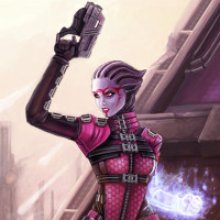 The image features a character from the Mass Effect video