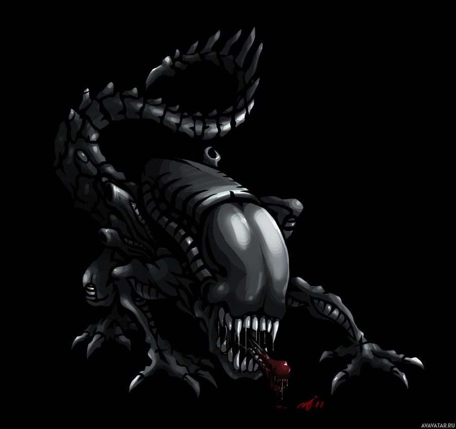 the Alien creature, which is a fictional species from the "Aliens" movie franchise. It's a dark and menacing depiction with a detailed design showcasing the iconic characteristics of the Alien such as its
