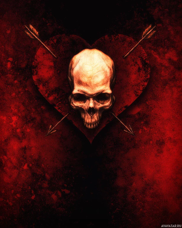 a heart shape. This is often associated with themes related to danger, piracy, or the concept of "death" within the context of love or relationships. The style appears to be