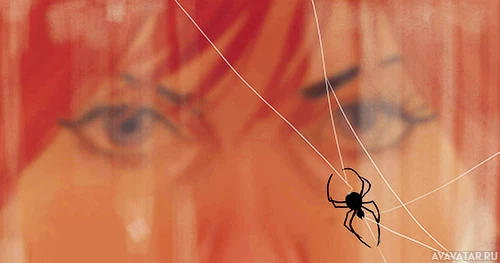 a piece of fabric. It's not clear whether the spider is real or part of an artistic representation.