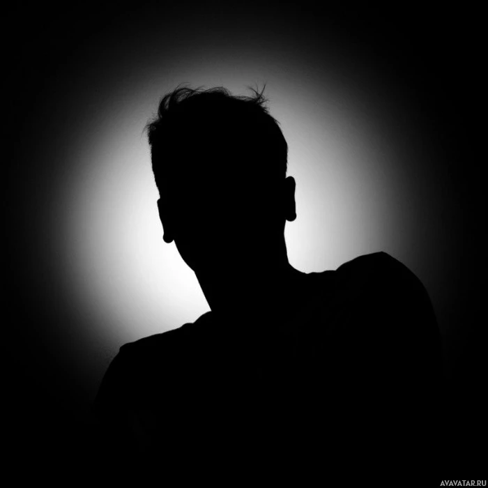 Картинка показывает силуэт человека. Человек, кажется, смотрит в сторону от камеры, давая боковой вид на голову и верхнюю часть тела. Освещение таково, что создает контраст между темной фигурой и светлым фоном, подчеркивая форму, но не раскрывая никаких конкретных деталей о личности или выражении человека.
