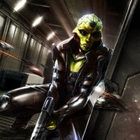 the video game "Mass Effect." This is an illustration of an alien known as Tali Zorah vas Normandy, who appears in various installments of the Mass