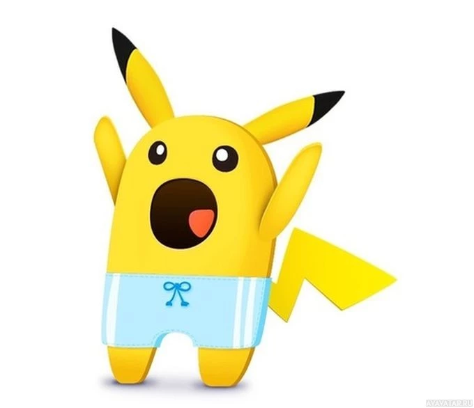 На картинке изображен анимированный персонаж, известный как Пикачу из франшизы Pokémon. Пикачу изображен в игривой позе, стоя на одной ноге во время ношения пары синих пижам с галстуком для лука. Кажется, что он улыбается или смеется.