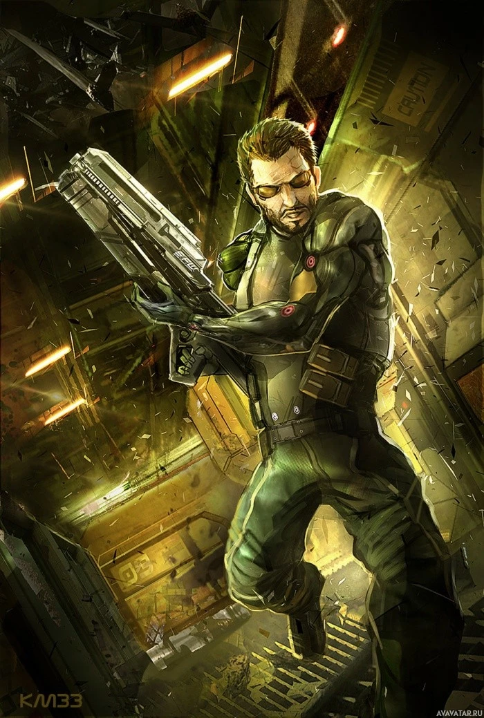 Deus Ex." He is wearing what appears to be