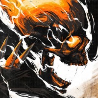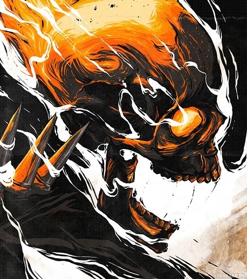 the Marvel Comics superhero, Ghost Rider. The character is shown with a fiery, skull-like head and