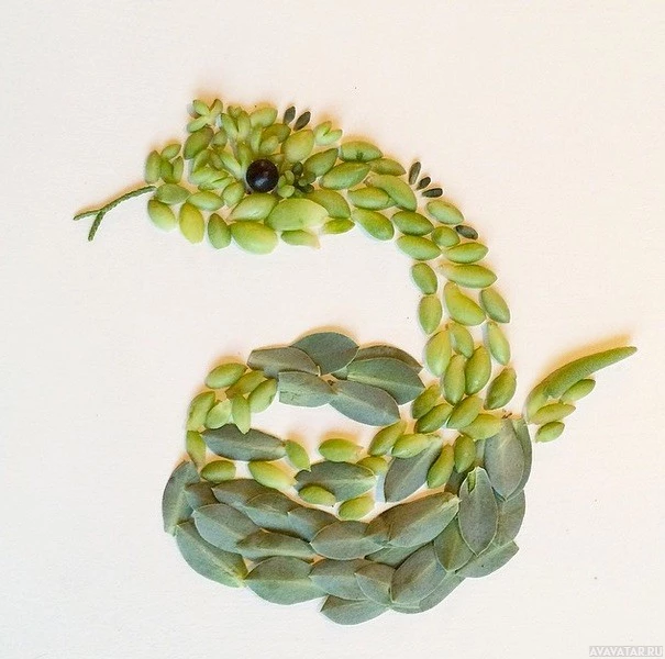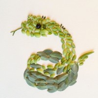 small leaves, possibly acorns or similar items. This arrangement is an artistic and creative way to repurpose natural elements into a visually