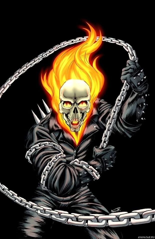 the Ghost Rider. The character is typically portrayed as a motorcycle-riding