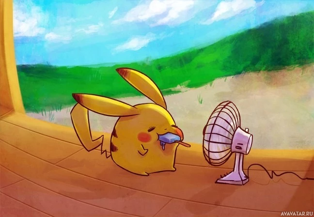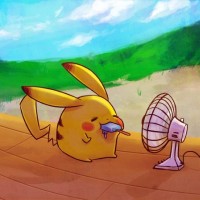 The image features Pikachu, a character from the Pokémon franchise. It depicts Pikachu sitting on what appears to be a brick floor with its paws near