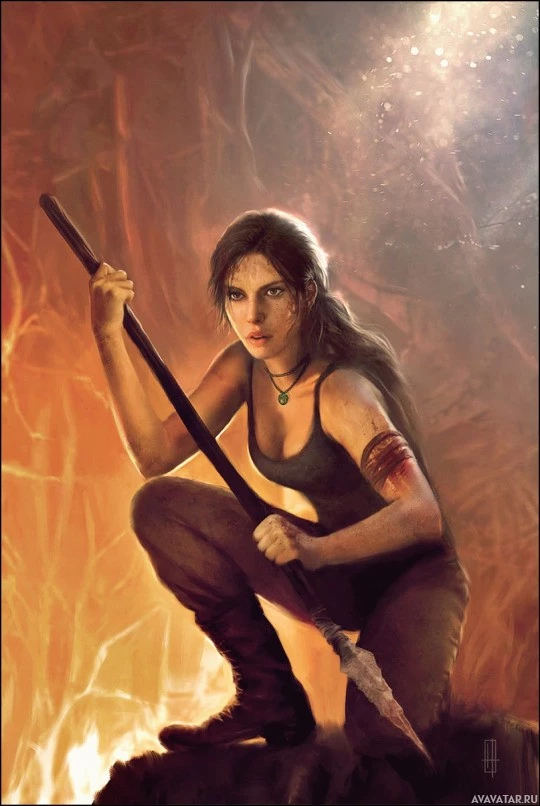 The image depicts a character that appears to be inspired by Lara Croft, known from