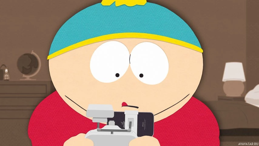 an animated character from the television show "South Park," specifically Cartman, a child known for his mischievous behavior. In this