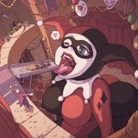 Harley Quinn, a character from the Batman universe. She is shown in her iconic costume with