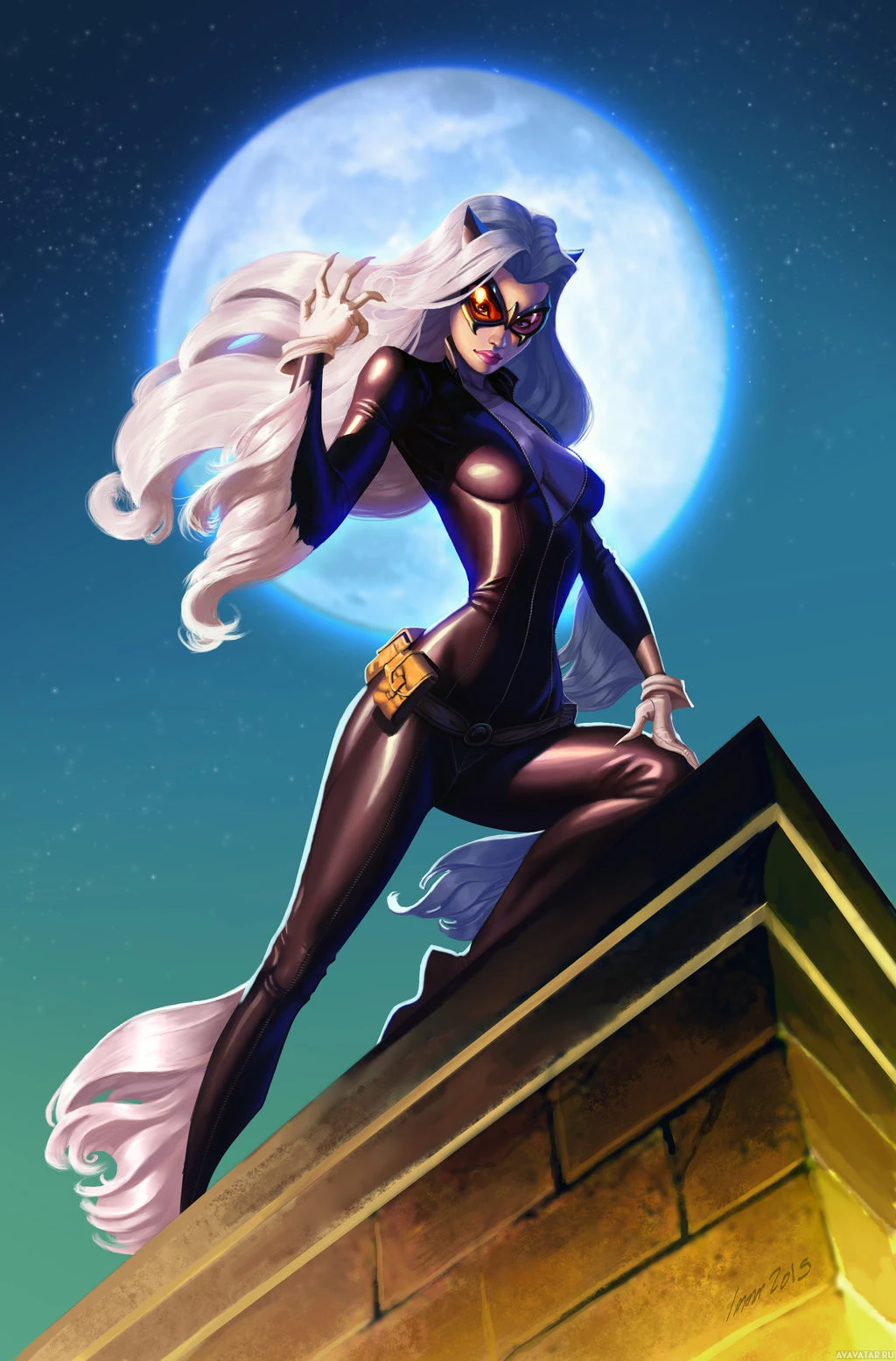 Black Cat" character, possibly inspired by comic book or video game characters known for their feline features and abilities.