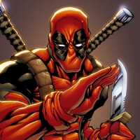 book character known for his sarcastic sense of humor and multiple healing factors. He is depicted with two katanas crossed behind him, which are commonly associated with him as his
