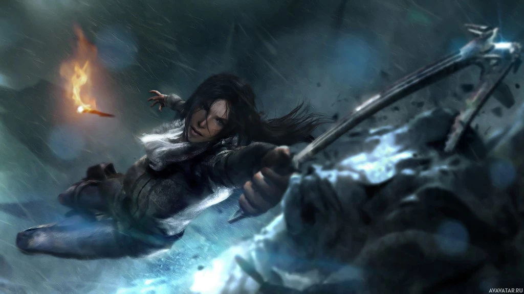The image shows a character who appears to be Lara Croft, the protagonist of the "Tomb Raider"