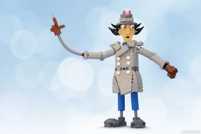 Lego character is depicted in an animated style, wearing a deerstalker hat and coat, which are iconic elements of Sherlock Holmes' attire. The Lego figure is posed with one hand holding a pipe, another accessory associated with the character, while the other hand is holding what appears to be