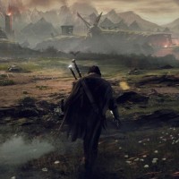 a video game set in the fantasy world of Middle-earth. In the foreground, there is a character standing in