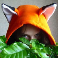 a hooded fox-themed costume or outfit. The hood has ears on the sides that resemble those of a fox, and the overall design gives the impression of