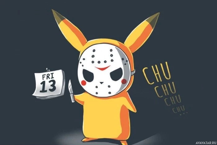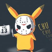 hockey mask, which is an iconic element from the Friday the 13th films. The text in the image says "Friday the 13th" at the top and "Pokemon" at the bottom, indicating that it's a mashup between these two