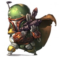 This image shows a stylized, cartoon-like depiction of the character Boba Fett from