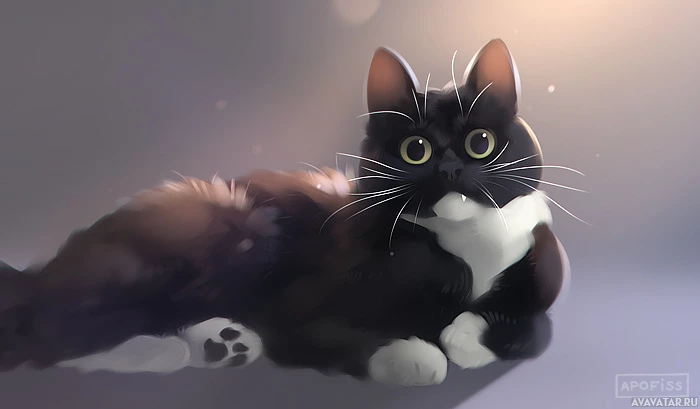 source of light, given the way the light is shining on its fur. The cat looks relaxed and at ease.