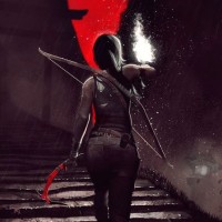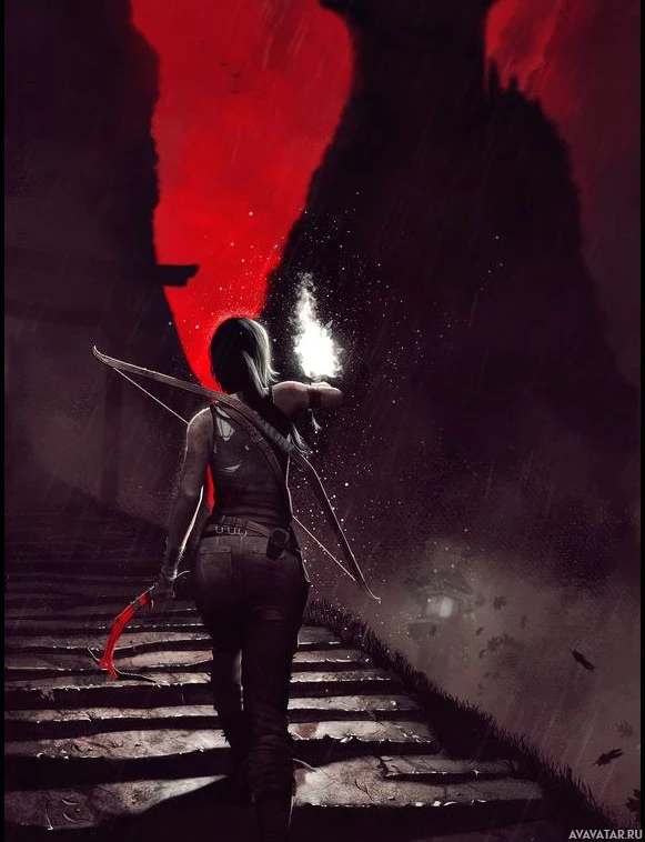 The image depicts a character from the "Tomb Raider"