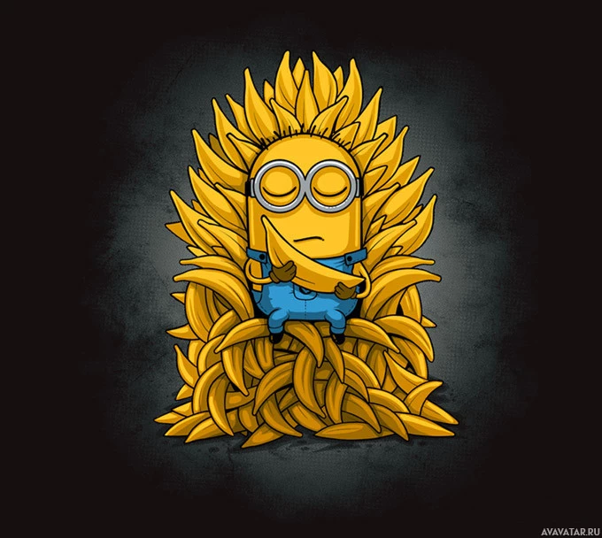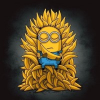 the animated movie "Despicable Me" sitting in a throne-like chair. He is depicted with his eyes closed, as if he is resting or meditating. Surrounding him are multiple bananas, arranged in such a way that they form a wall around the Minion. This image plays on the idea of a "banana throne," which is a humorous take on the famous Iron Throne from "