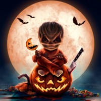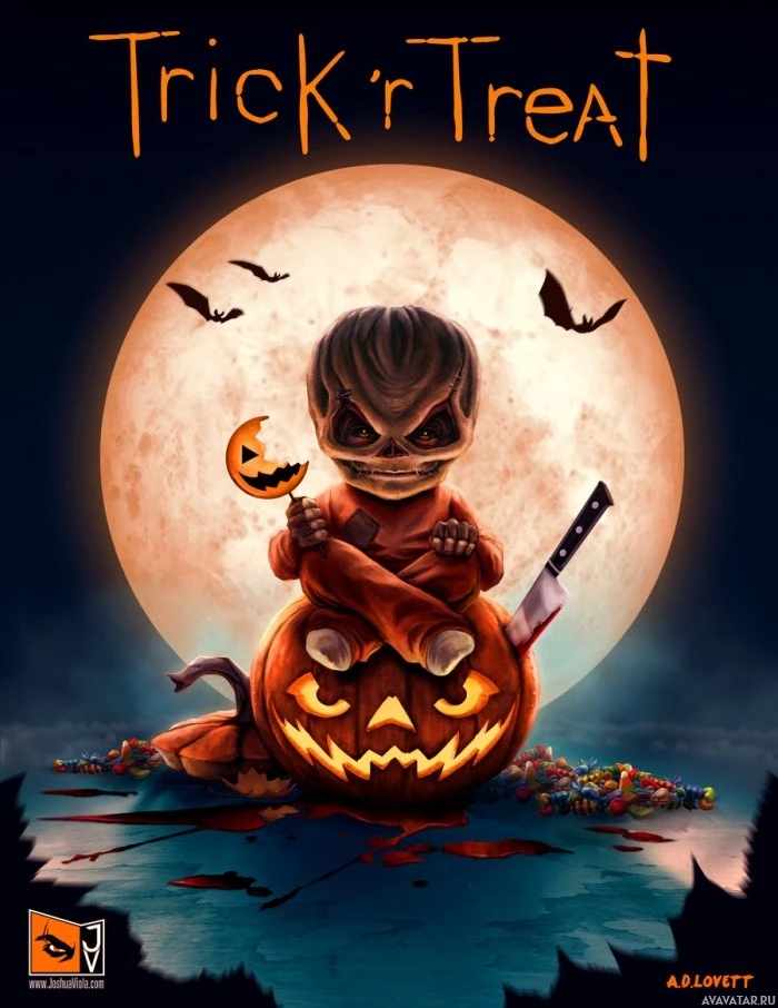 a full moon rises over a silhouette of trees under a starry sky. The text "TRICK OR TREAT" is prominently displayed at the top, with a smaller "Halloween Edition" below it, indicating that this version of the game is for