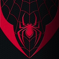 The image features the Spider-Man logo, which includes a stylized spider emblem at the center with red and black elements. The background has a dark pattern that could be inspired by webbing, consistent with Spider-Man's theme.