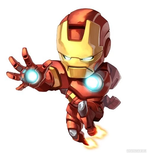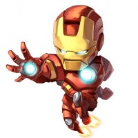 an animated character resembling Iron Man from the Marvel comics and movies. It is depicted in a cute, cartoon-like style with exaggerated features suitable for a younger audience or as a stylized