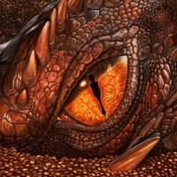 a fantastical creature that resembles a dragon from Middle-earth, reminiscent of the character Smaug from the works of J.R.R. Tolkien, specifically from "The Hobbit" or "The