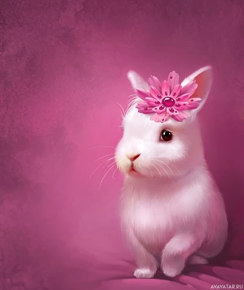 The image depicts a cute white rabbit sitting upright with