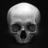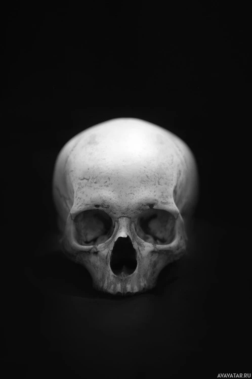 a human skull with the black and white filter applied to it. This gives the picture a classic monochrome look, often used in photography for