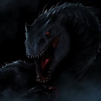 sharp fangs, along with what seems to be scales and armor plates like those found on dinosaurs. The creature is set against