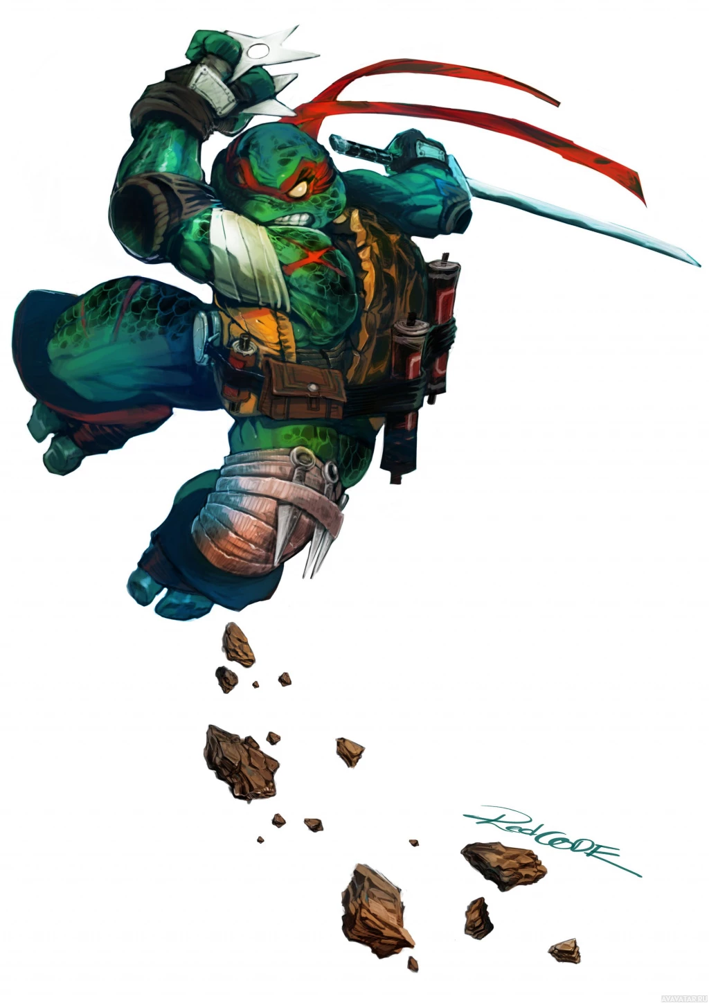 The image shows a digitally illustrated character that appears to be Raphael, one of the four main characters from the Teenage