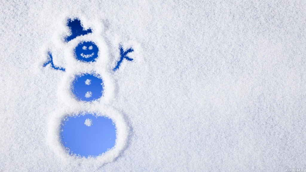 a smiling face and arms spread out, set against a background of freshly fallen snow. This creative use of objects to mimic