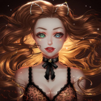 red hair, wearing cat ears. She has