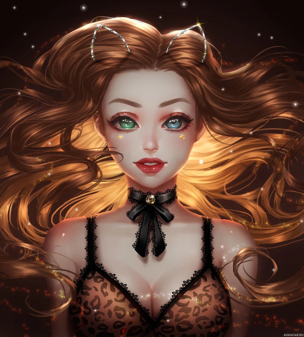 a light source behind her. There are also some decorative elements around her that resemble stardust or sparkles, adding a magical or fantasy-like quality to the image.