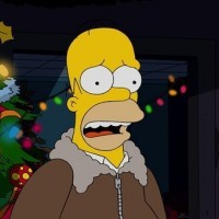 various situations within the show. The setting suggests that the image might be from a holiday-themed episode of "The Simpsons."