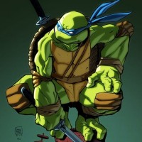The image shows a cartoon depiction of Leonardo, a character from the Teenage
