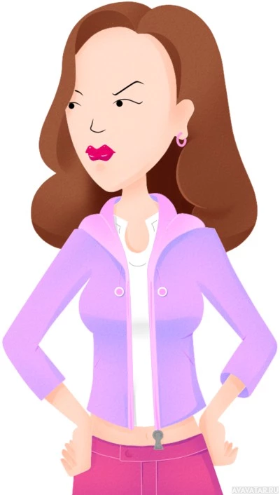 The image shows a cartoon illustration of a woman. She appears to be in a confident or assertive stance, with her hands on her hips and an expression that might suggest she is making a statement or reacting strongly to something. She has light skin,