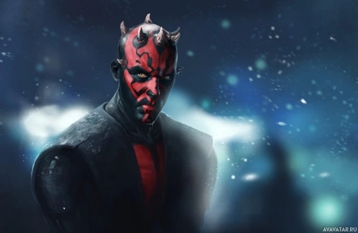 Darth Maul. He is dressed in dark attire, which is typical of his appearances in the movies, and he has