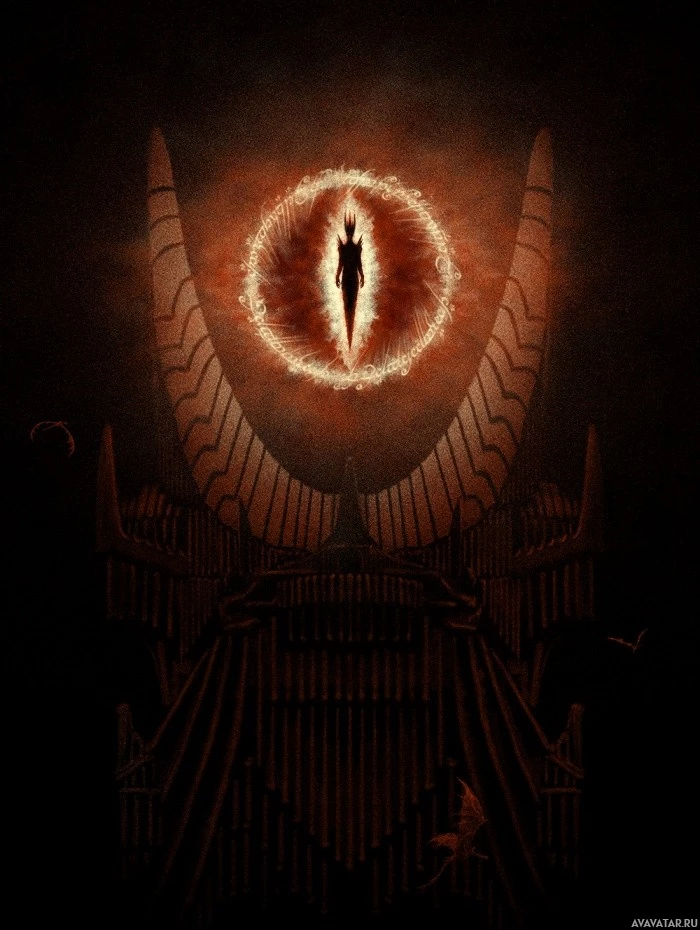 the Eye of Sauron or Ring of Power. This eye is iconic within the story and represents Sauron's influence and control over his realm. The background has a menacing and ominous feel, with a dark,